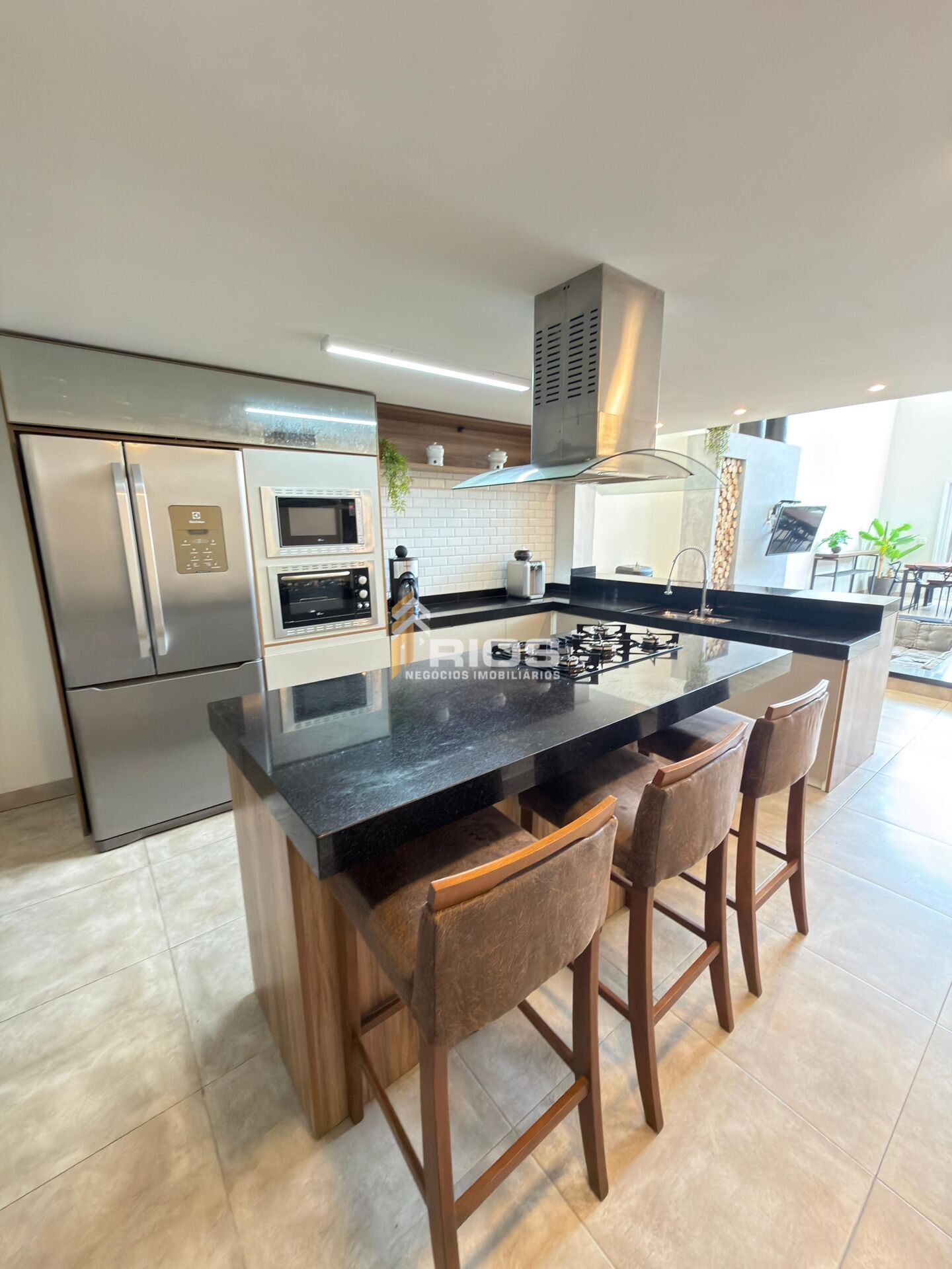 - Cozinha americana com planejados e eletrodomésticos embutidos